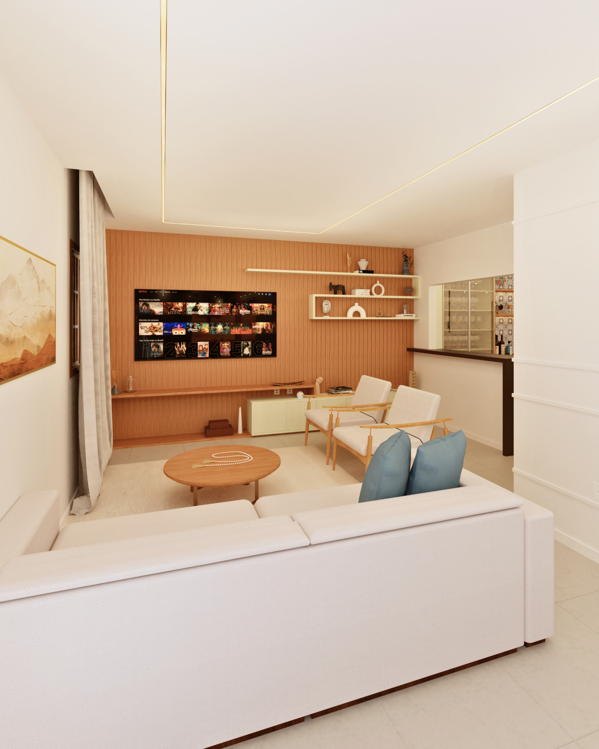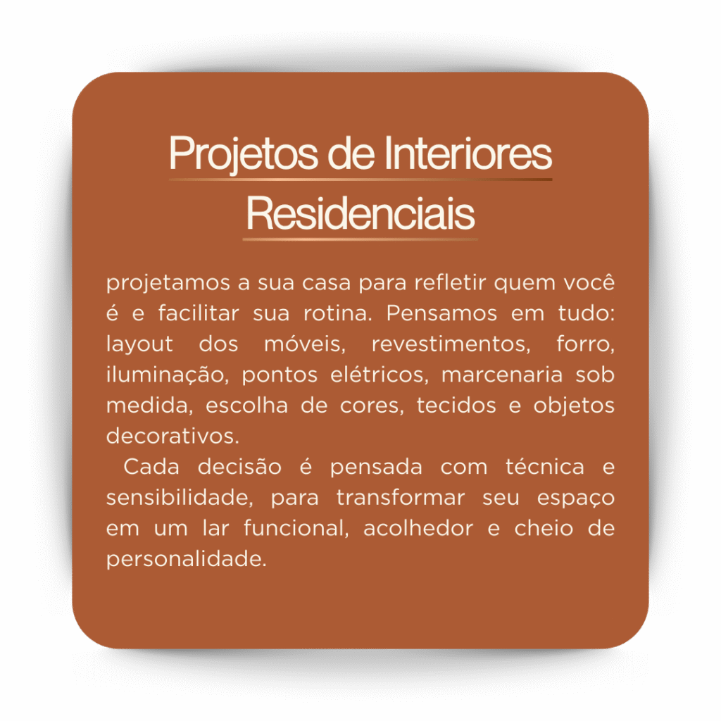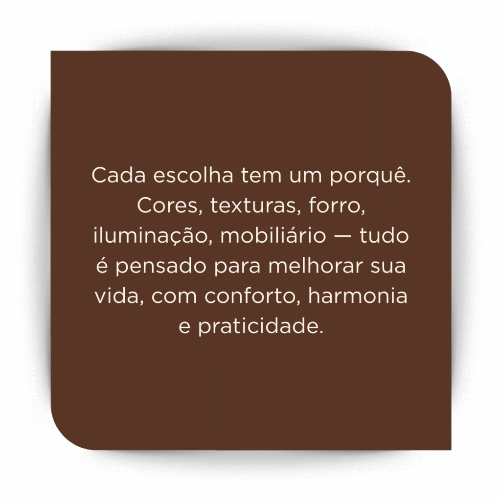 Não projeto apenas interiores. Projeto vida, tempo de qualidade e experiências possíveis. Porque acredito que um espaço bem pensado transforma mais do que paredes. Transforma histórias.
